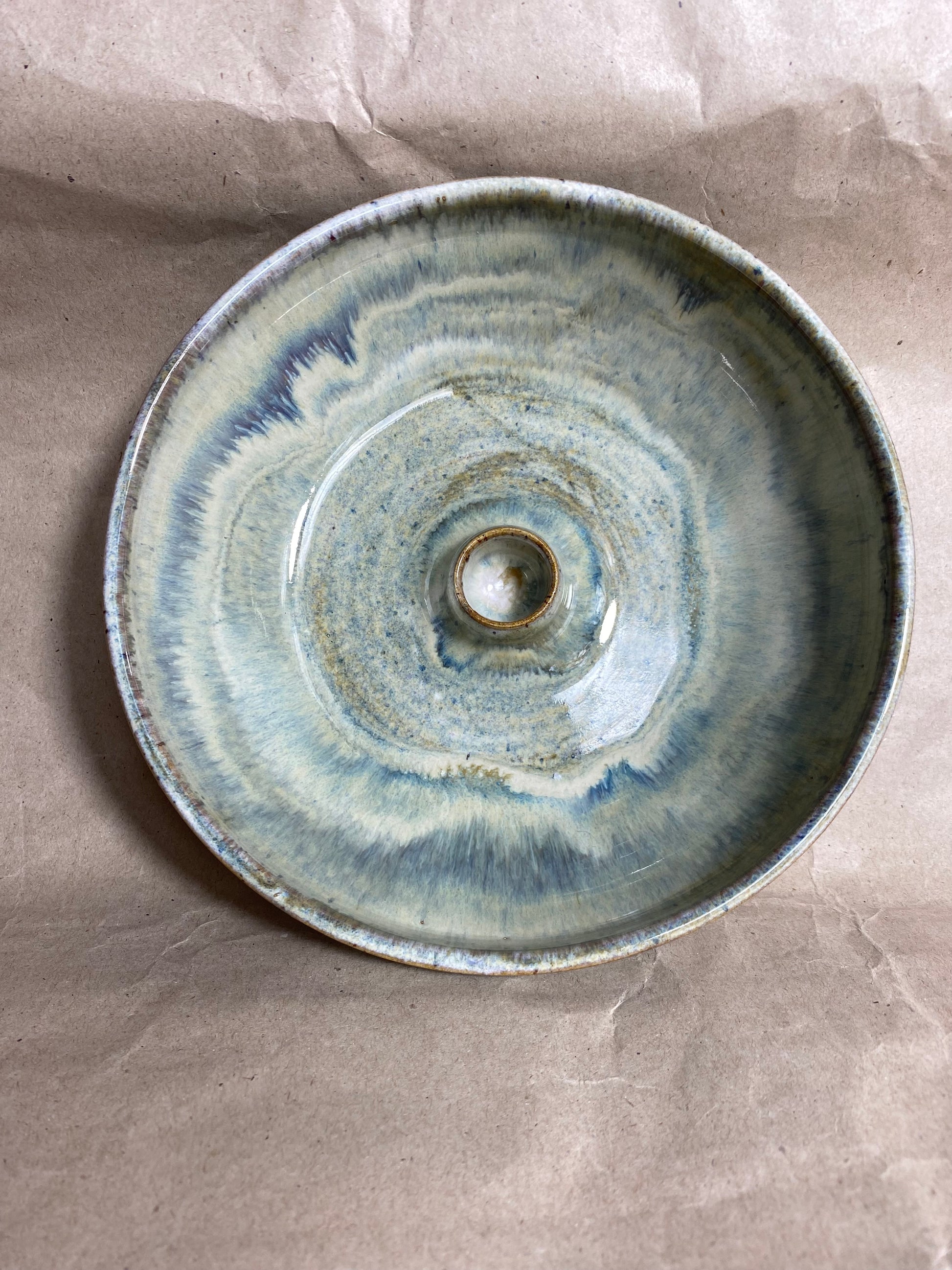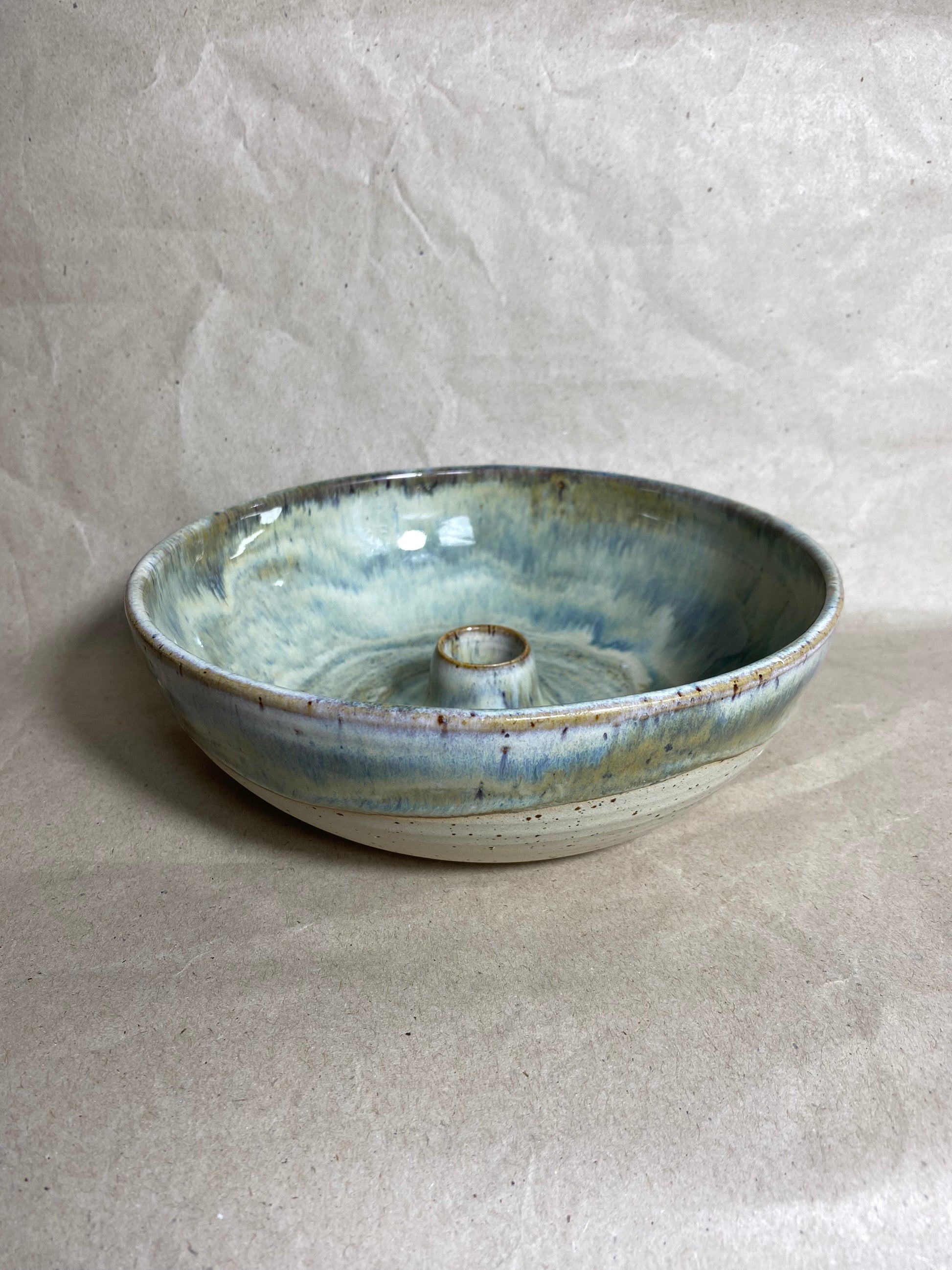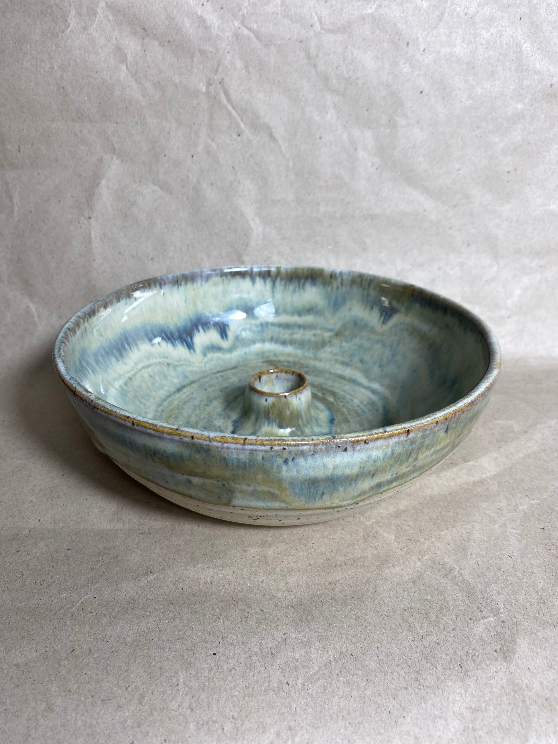 Kerzenhalter aus weißem Steinzeugton mit Spots, hergestellt in liebevoller Handarbeit.