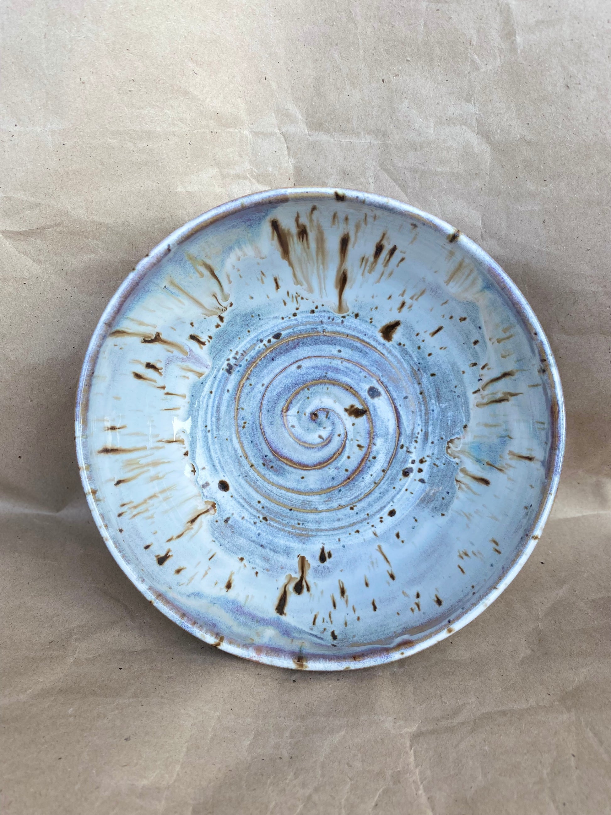 Bowl aus weißem Steinzeugton mit Spots, hergestellt in liebevoller Handarbeit.